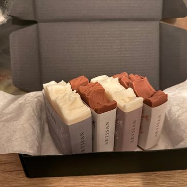 Each soap is made using the traditional cold-process method with nourishing, skin loving ingredients such as tallow, coconut oil, olive oil and caster oil. Because every bar is handcrafted , no two are exactly the same -with natural variations that reflect their unique , handmade beauty.